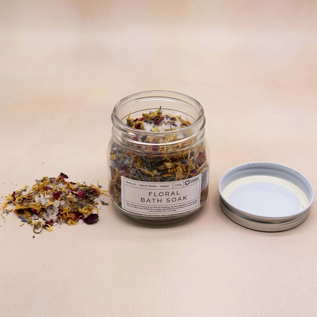 Adaugă 1–2 linguri din amestec în apa caldă a băii, lasă florile să se hidrateze și sărurile să se topească treptat. Pentru o experiență completă, aprinde o lumânare parfumată, adaugă in apă cateva picături din uleiul tău essential preferat și transformă baia într-un adevărat ritual de relaxare. - Bucură-te de infuzia florală