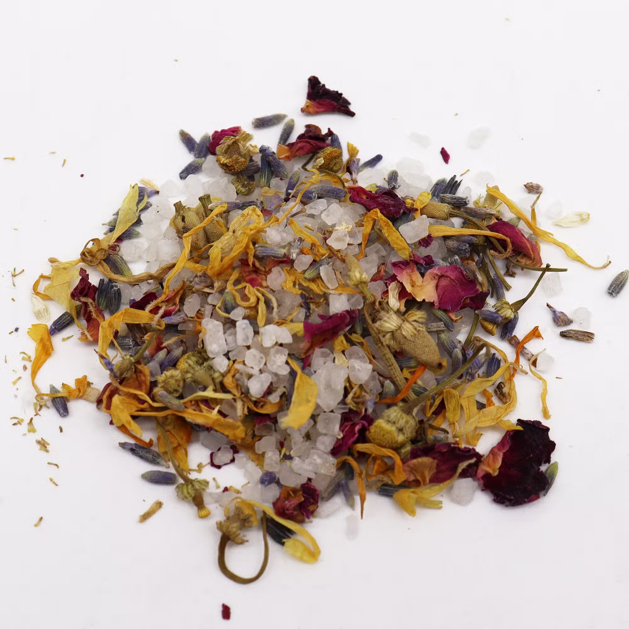 Ingrediente: Sare de mare, flori de lavandă (Lavandula Angustifolia), petale de trandafir (Rosa Centifolia), flori de mușețel (Matricaria Recutita), petale de gălbenele (Calendula Officinalis).