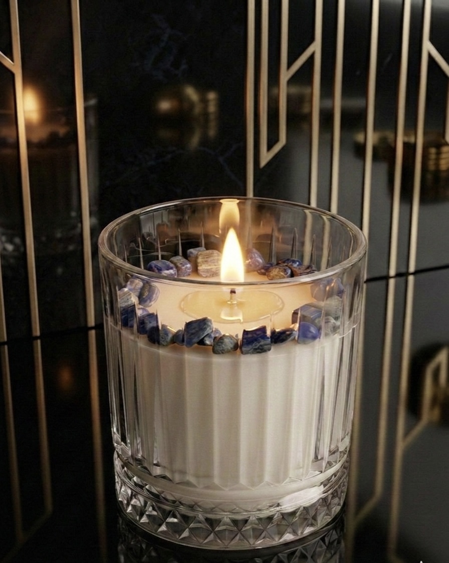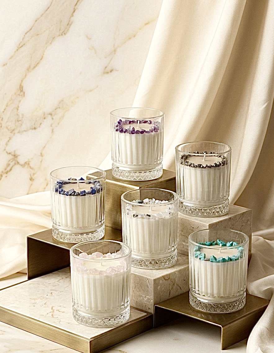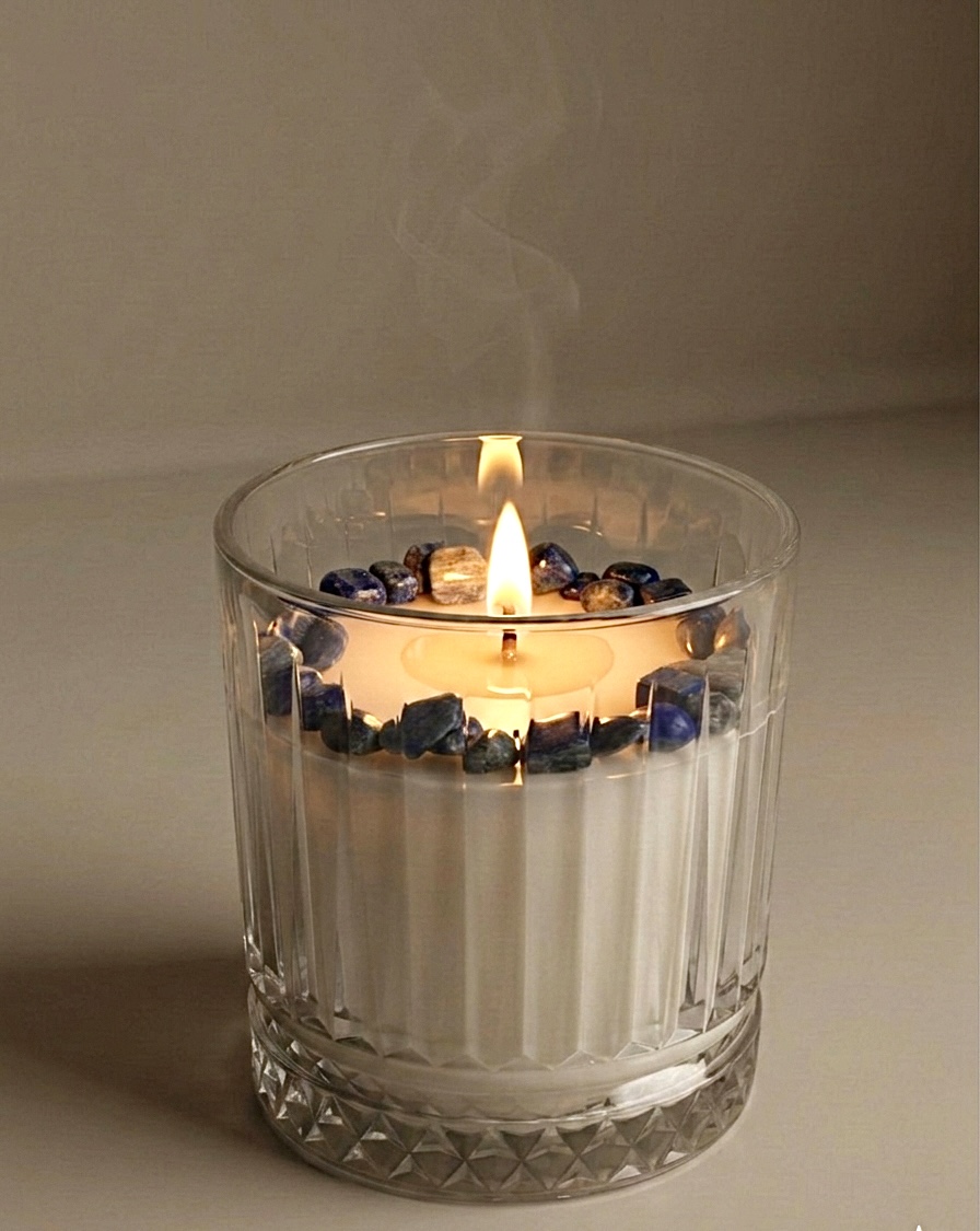 Aprinderea acestei lumânări devine astfel un mic ritual de intenție, în care aroma și cristalul natural creează împreună o atmosferă de echilibru, claritate și liniște interioară.