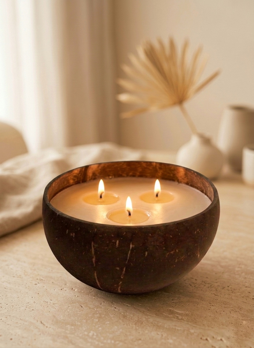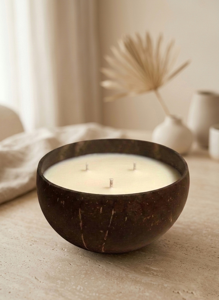 1x Lumânare din ceară naturală de soia în recipient nucă de  cocos Yuna – 450 gr