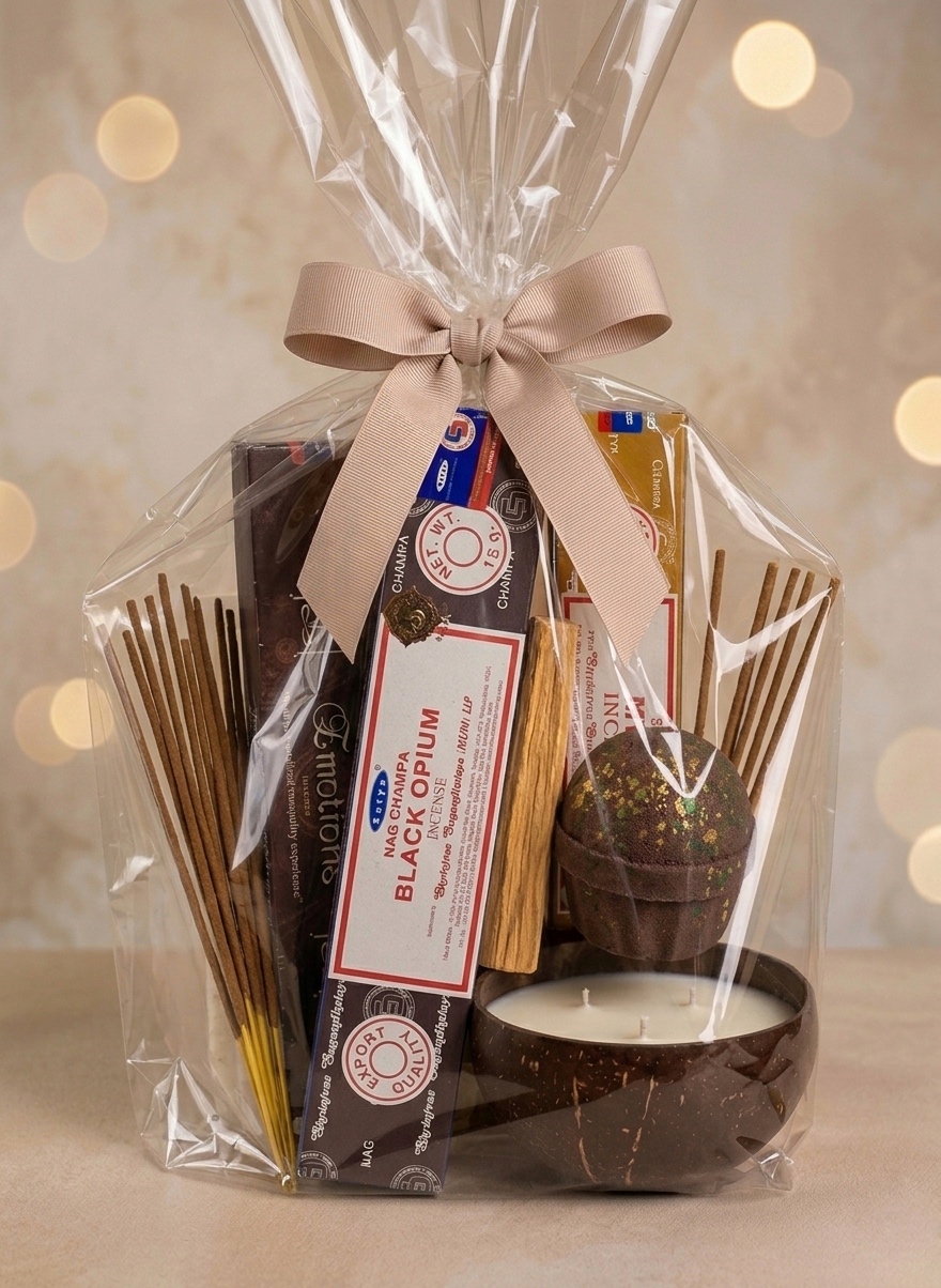 Acest pachet combină arome calde, gurmande și orientale, perfecte pentru un moment de relaxare sofisticată. Lumânarea mare în recipient nucă  cocos se completează armonios cu efervescența bombei de baie Dubai – un amestec decadent de ciocolată și oud.